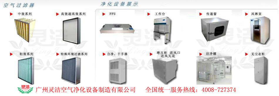 空氣過濾器、空氣凈化設(shè)備專業(yè)廠家,通過ISO9001、ISO14001、CE、ROSH等多項國際認證,100%品質(zhì)保證!“靈潔”牌空氣過濾器及凈化設(shè)備產(chǎn)品均按國家標準全檢合格出廠,廠家長期提供技術(shù)支持, 歡迎來電咨詢!專業(yè)生產(chǎn)“靈潔”牌G級初效過濾器,F(xiàn)級中效過濾器,H級高效過濾器,U級超高效過濾器及各類液槽式過濾器、耐高溫過濾器、化學(xué)過濾器、PM2.5過濾器、HEPA濾網(wǎng)等;專業(yè)生產(chǎn)“靈潔”牌風(fēng)淋室、傳遞窗、超凈工作臺、FFU(風(fēng)機過濾單元)、層流送風(fēng)天花、百級層流罩、DOP高效送風(fēng)口、潔凈棚、新風(fēng)柜、生物安全柜等 聯(lián)系人 : 劉小姐 18925063248 龔先生 13710142110